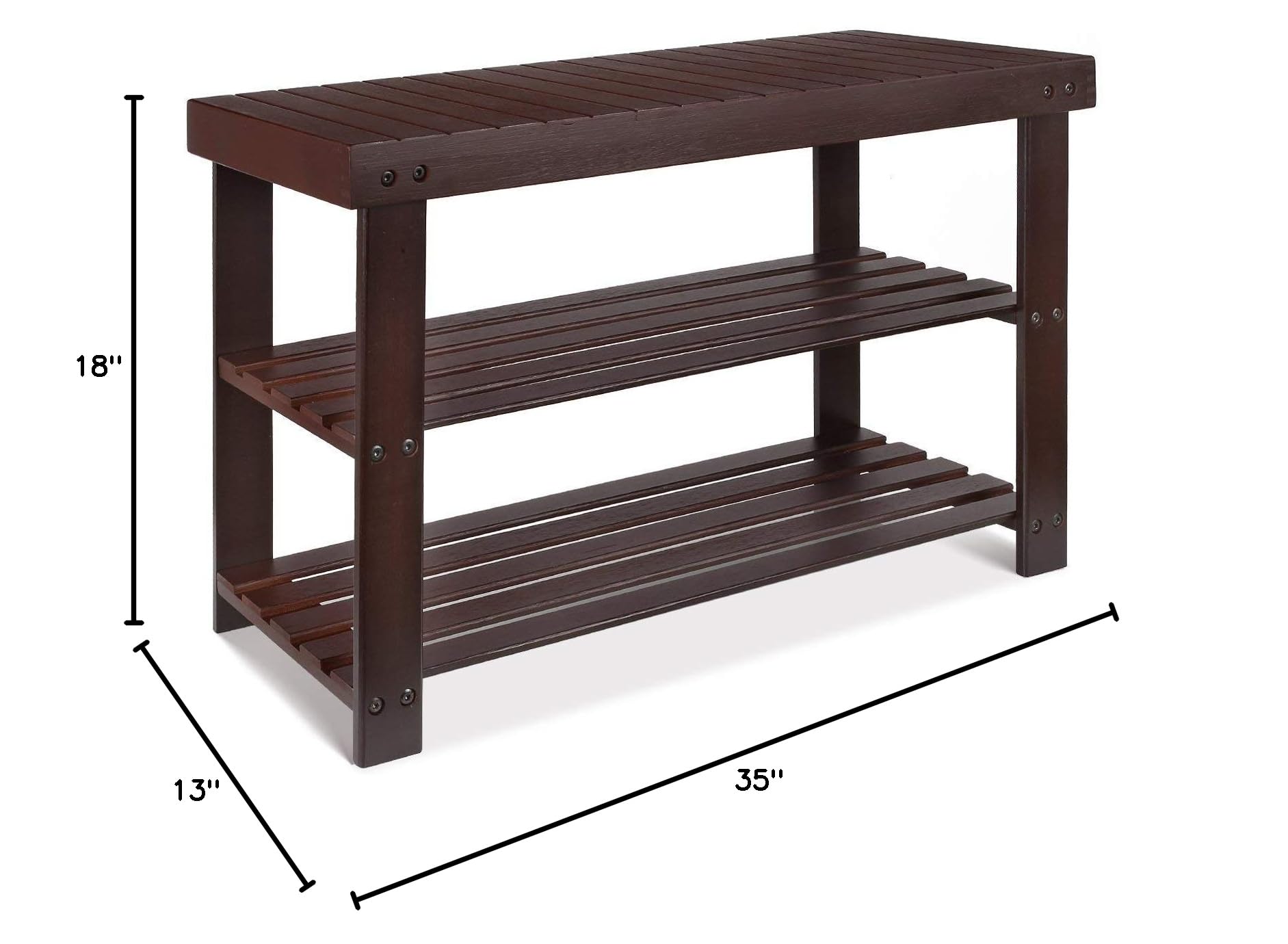 - Durable Solid Wood Shoe Bench in Cherry Finish