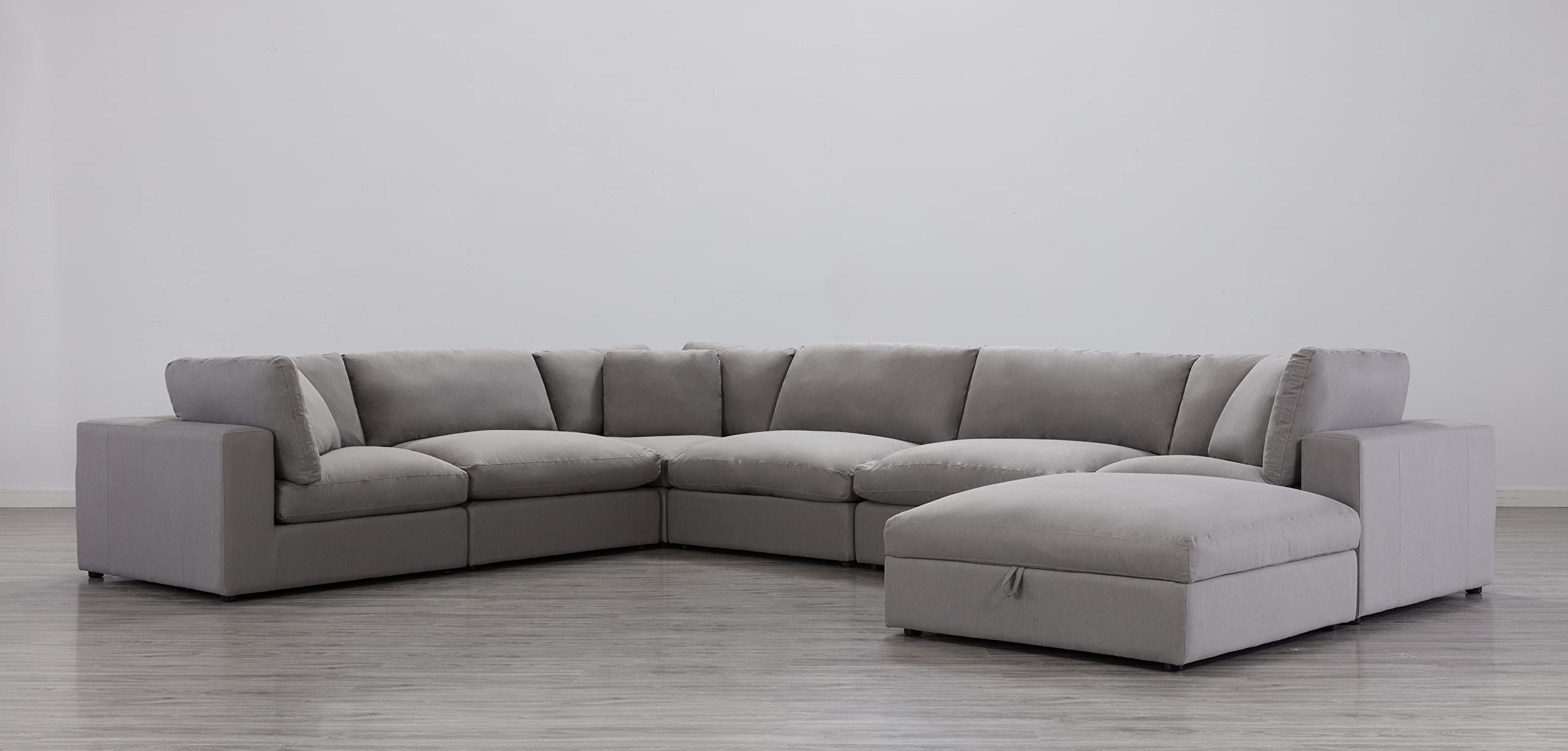 - Includes 3 corner pieces, 3 armless chairs, 1 storage ottoman. This cloud-like modular sofa can be configured in any shape and space, build your personal lounge space with these individual pieces